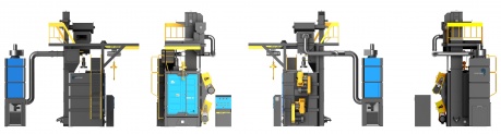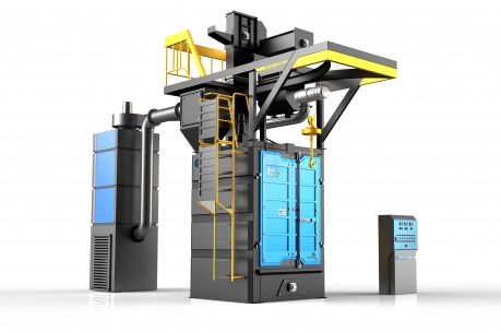 The SH-line is compact in design, does not require a pit, and consists of units featuring single hook, double hook, lifting and non-lifting style designed to blast/peen castings, structural components, non-ferrous alloy parts.